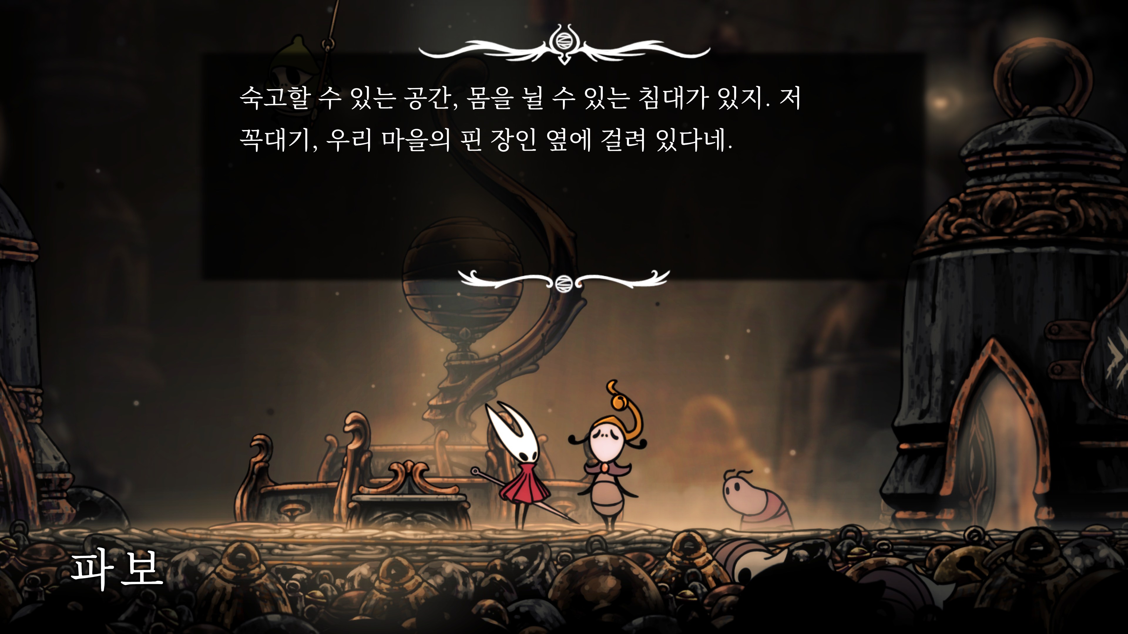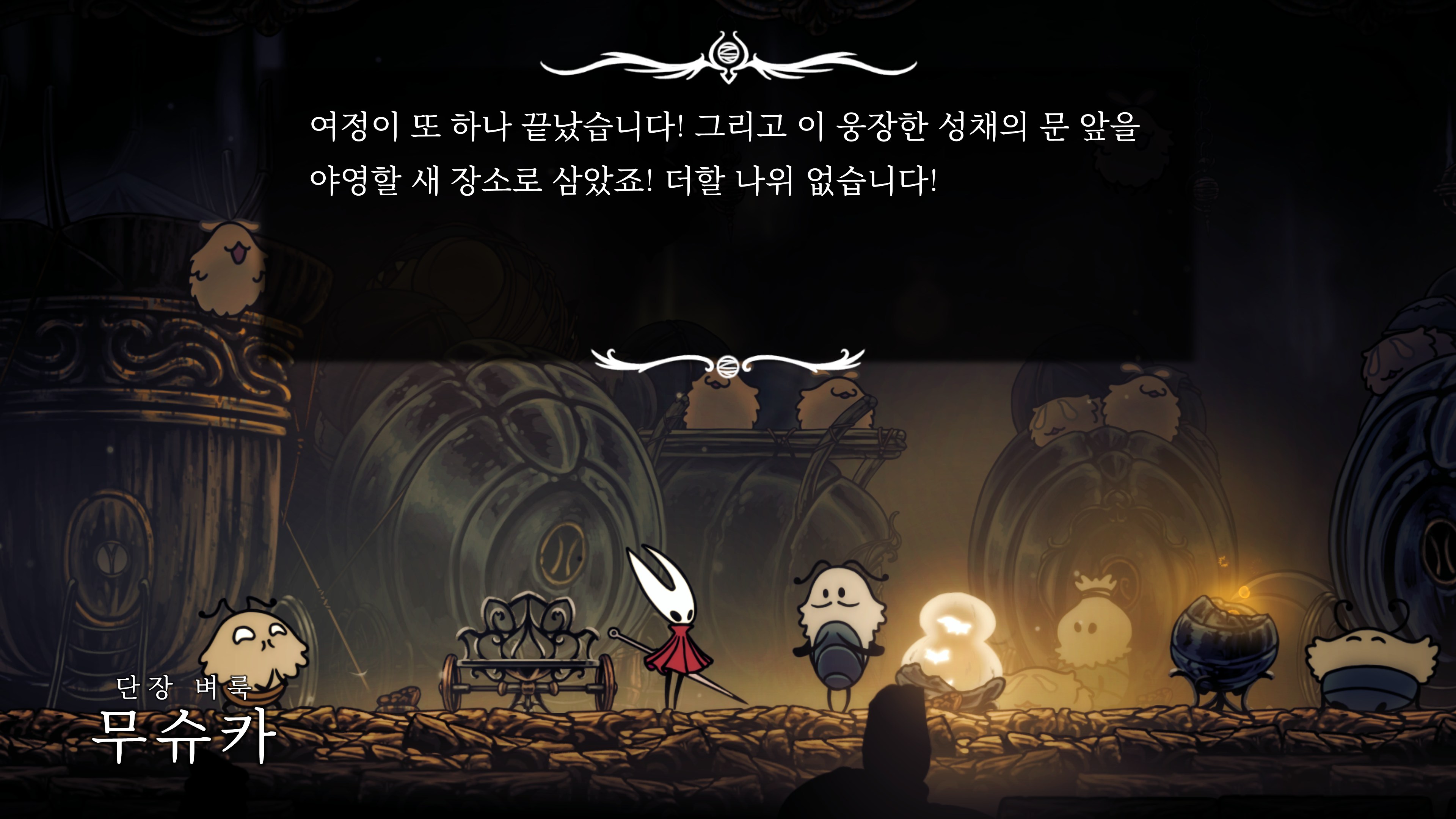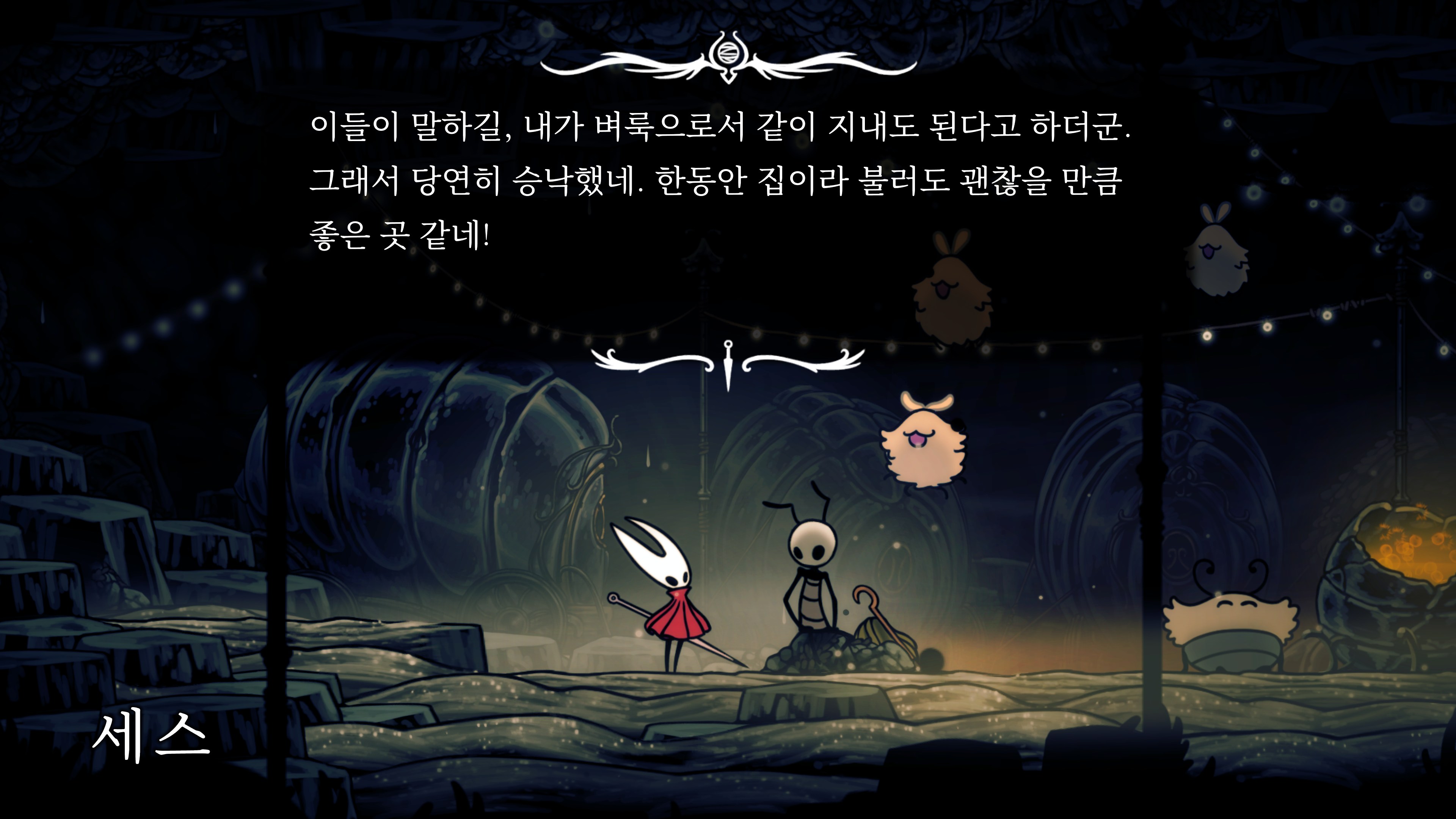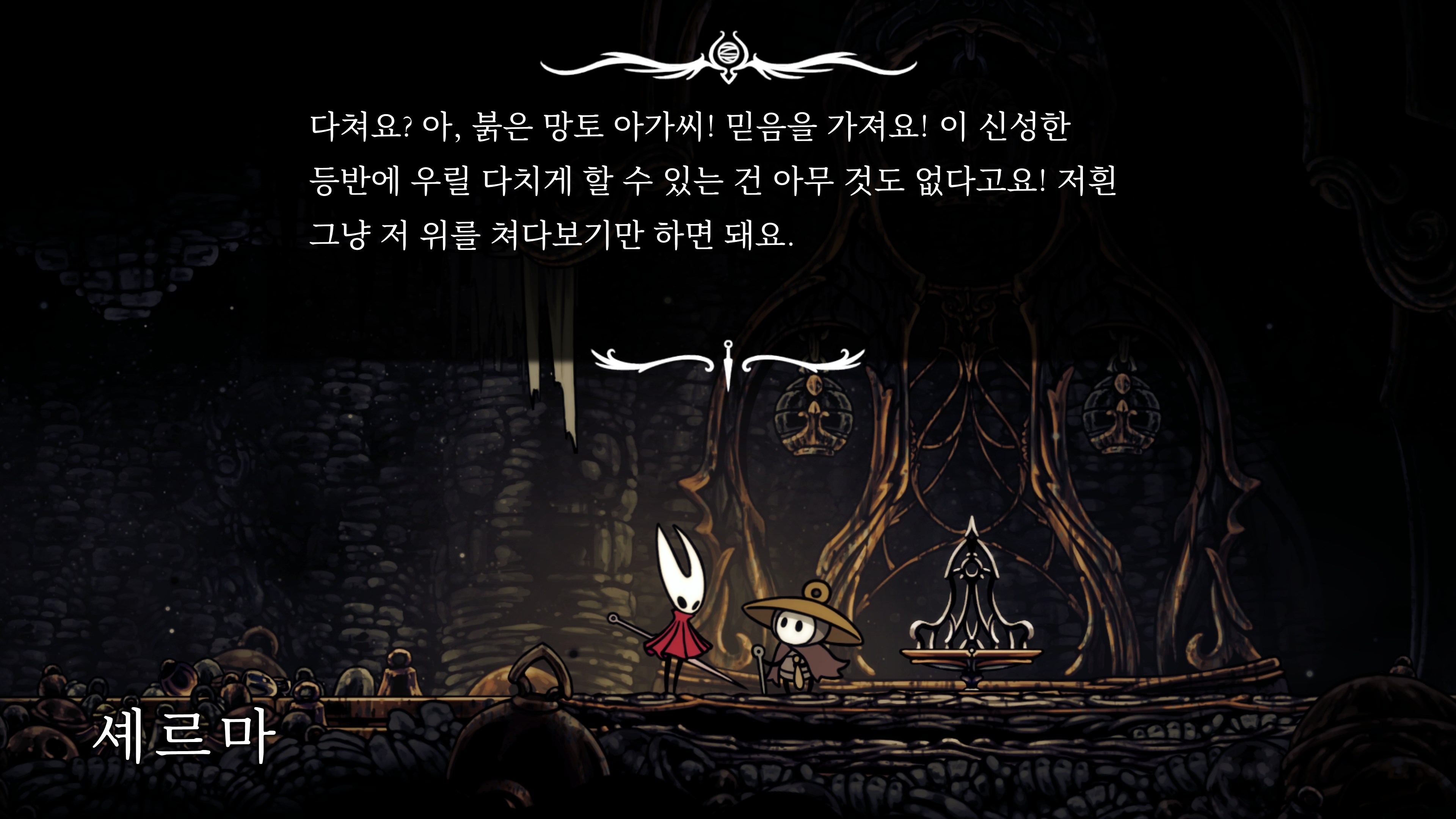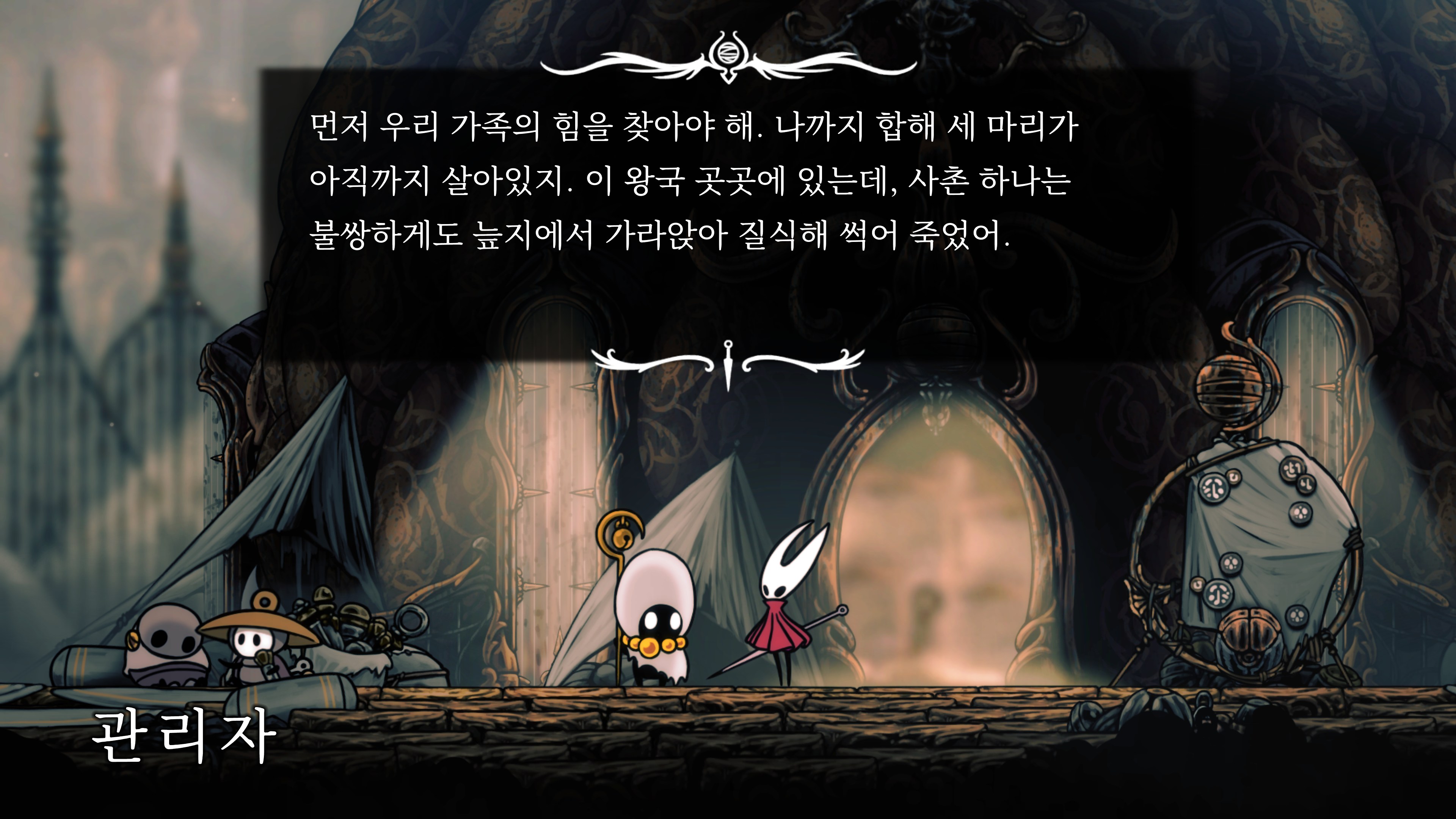 영원의 꽃 힘이 다 되어가는 순간, 할로우 나이트 기사가 나타나서 호넷과 레이스를 구출해 줬다.