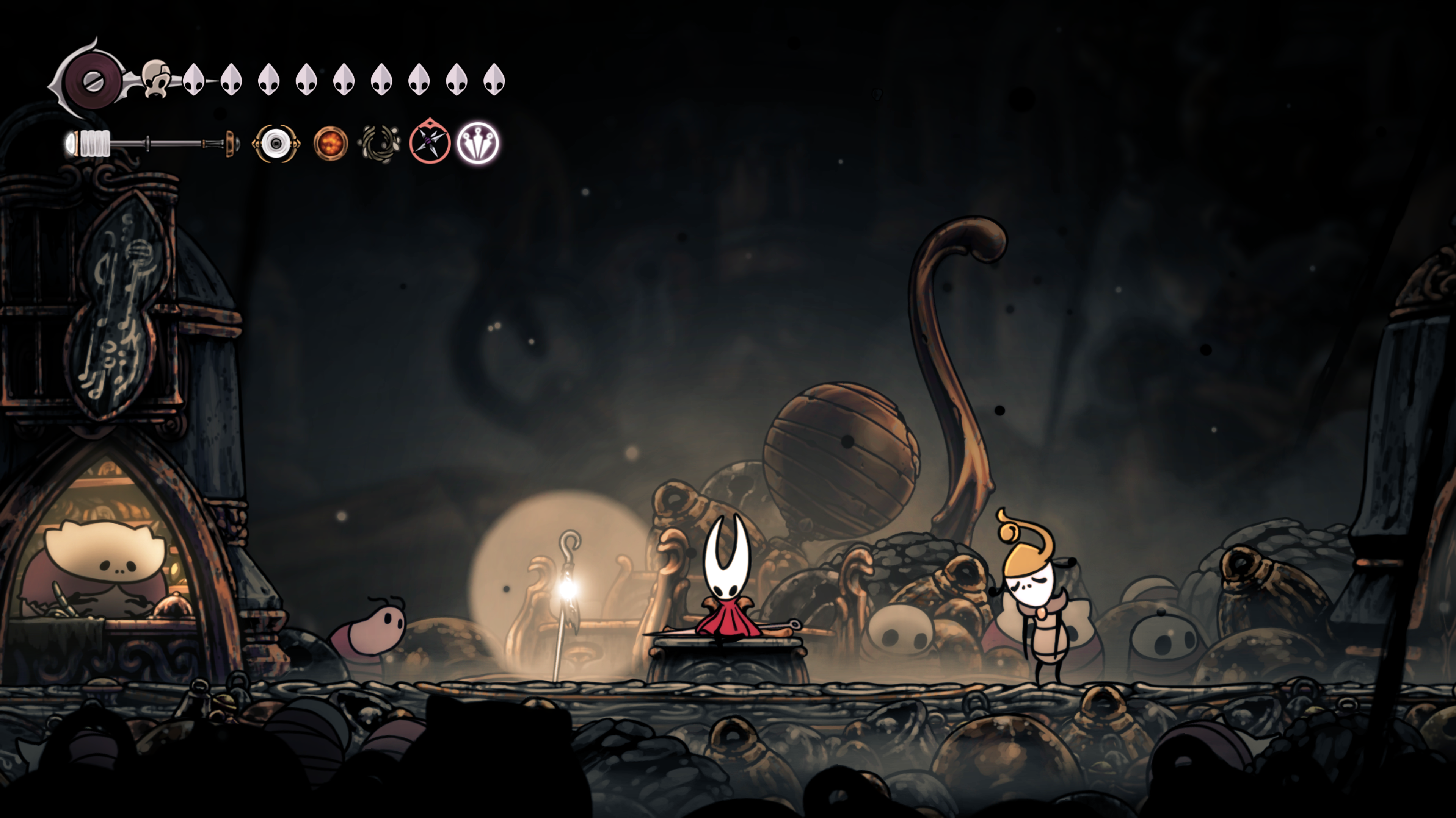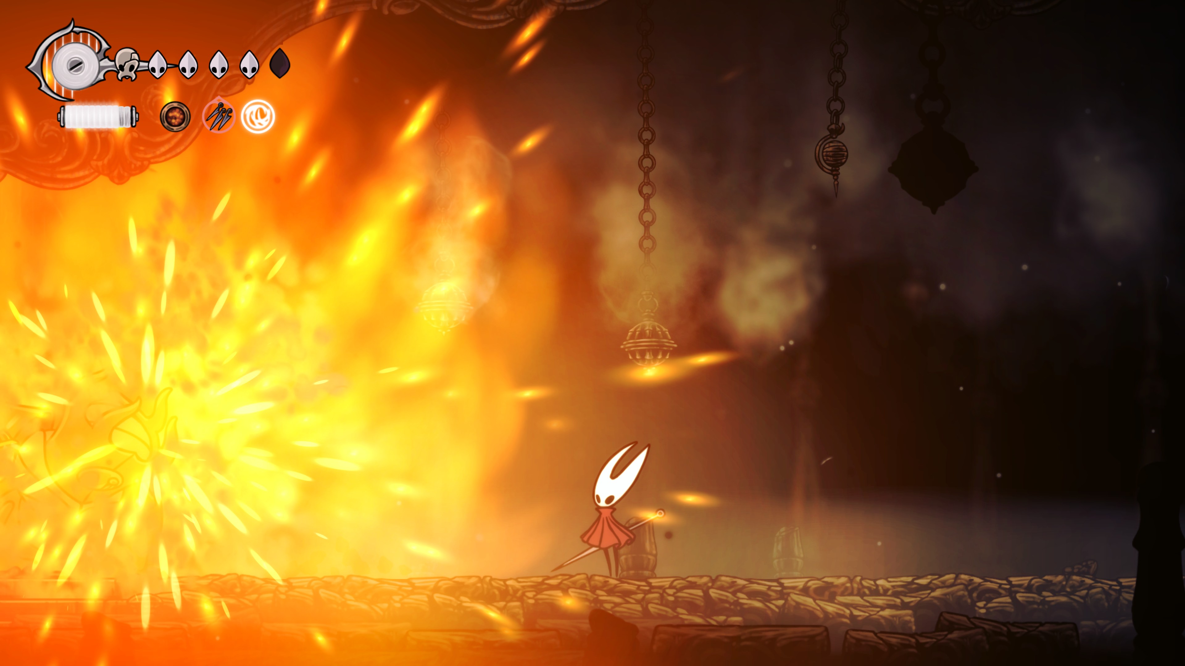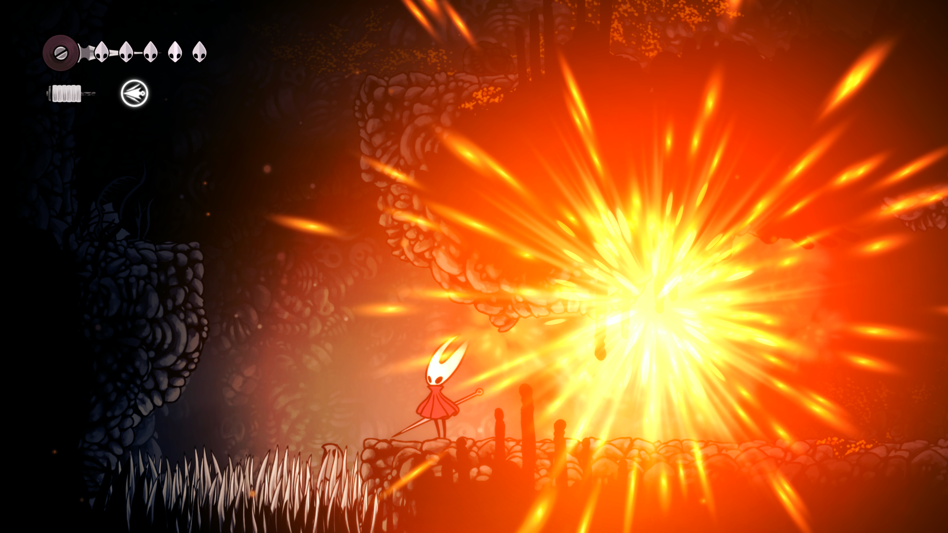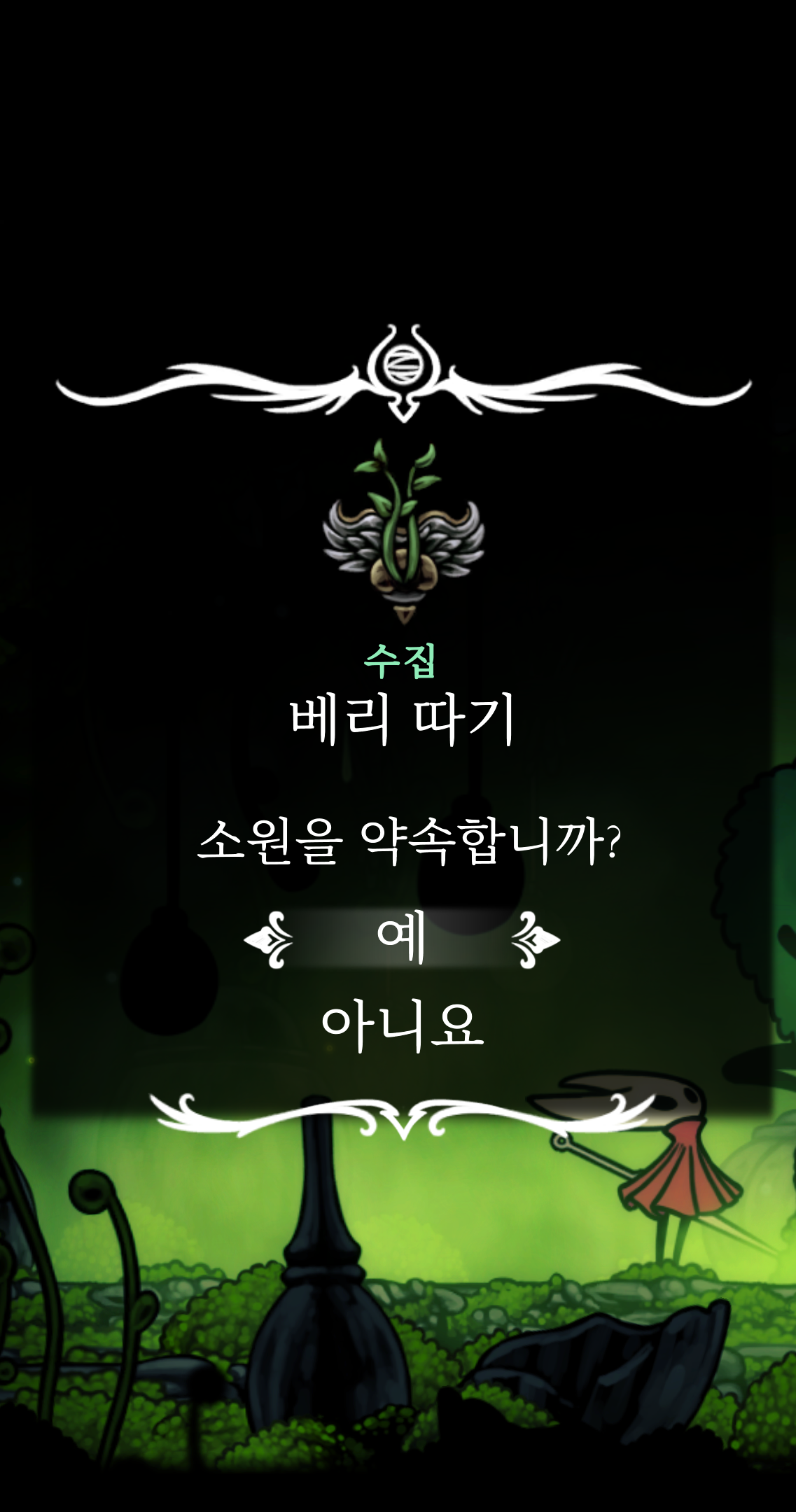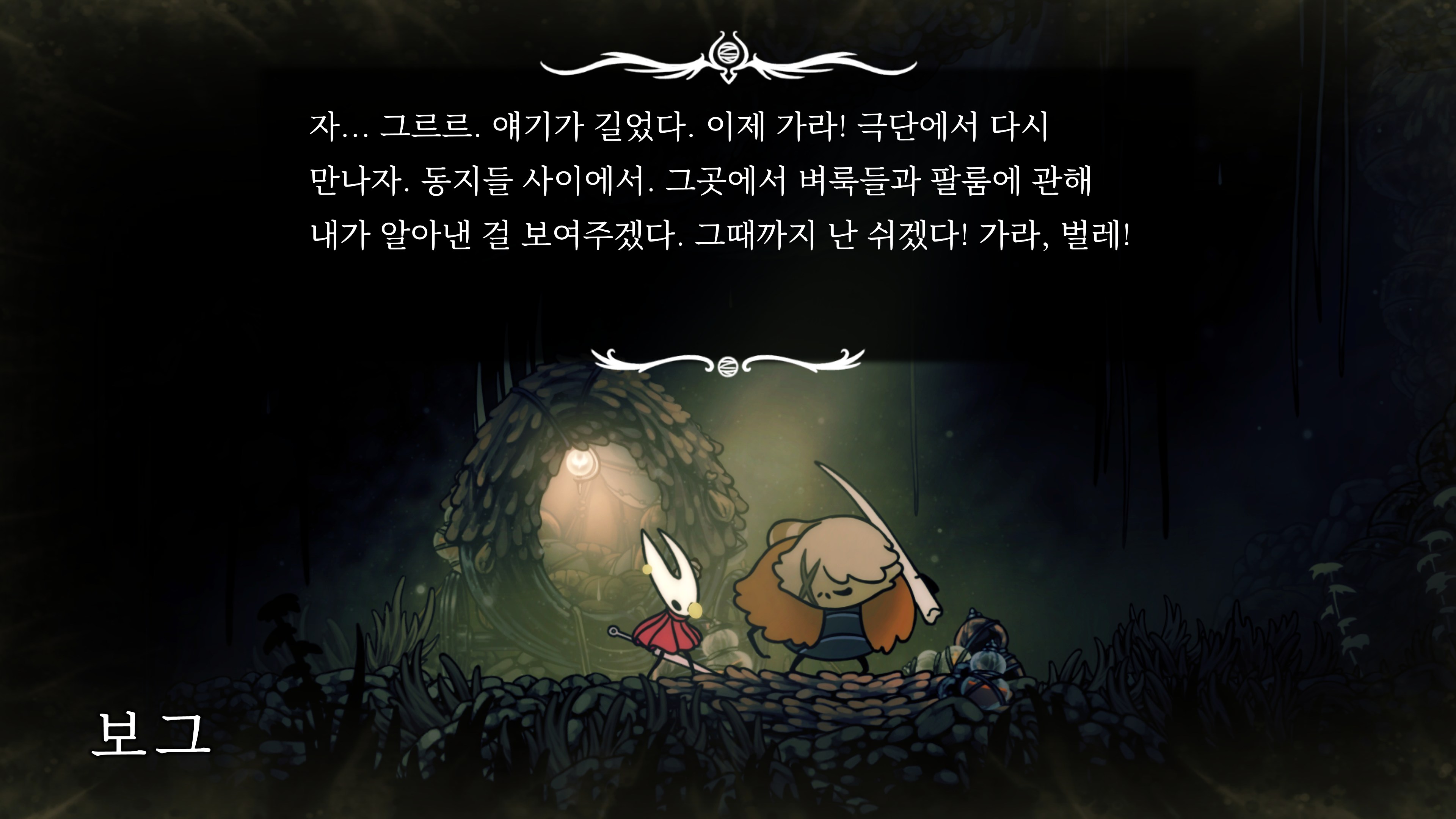 영원의 꽃 힘이 다 되어가는 순간, 할로우 나이트 기사가 나타나서 호넷과 레이스를 구출해 줬다.