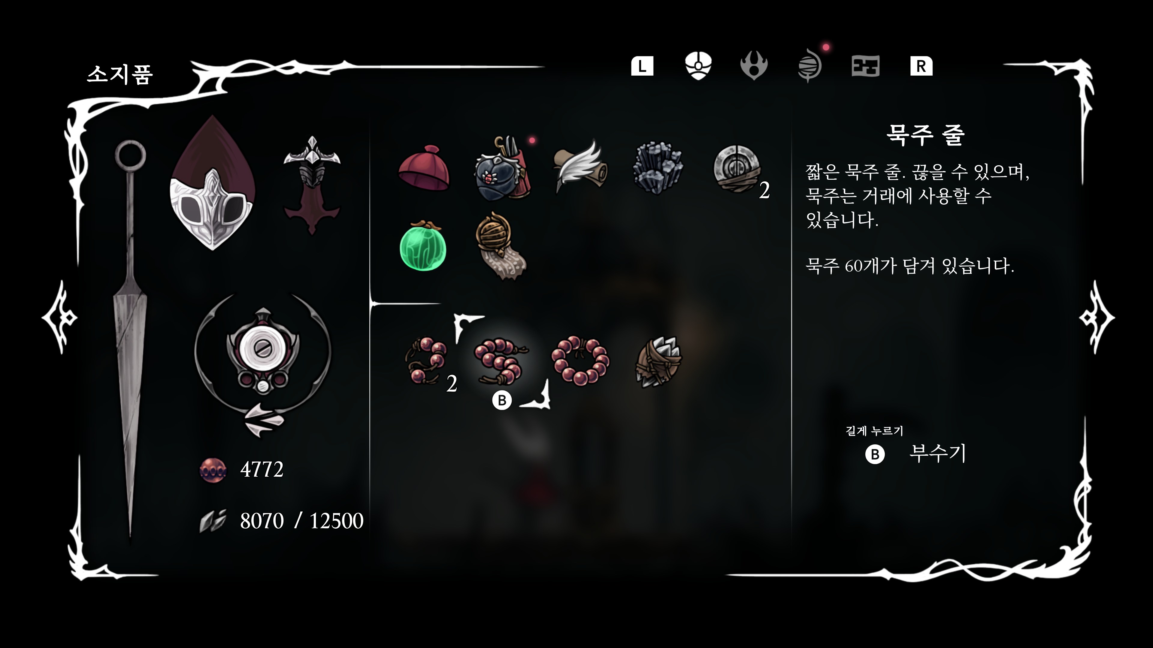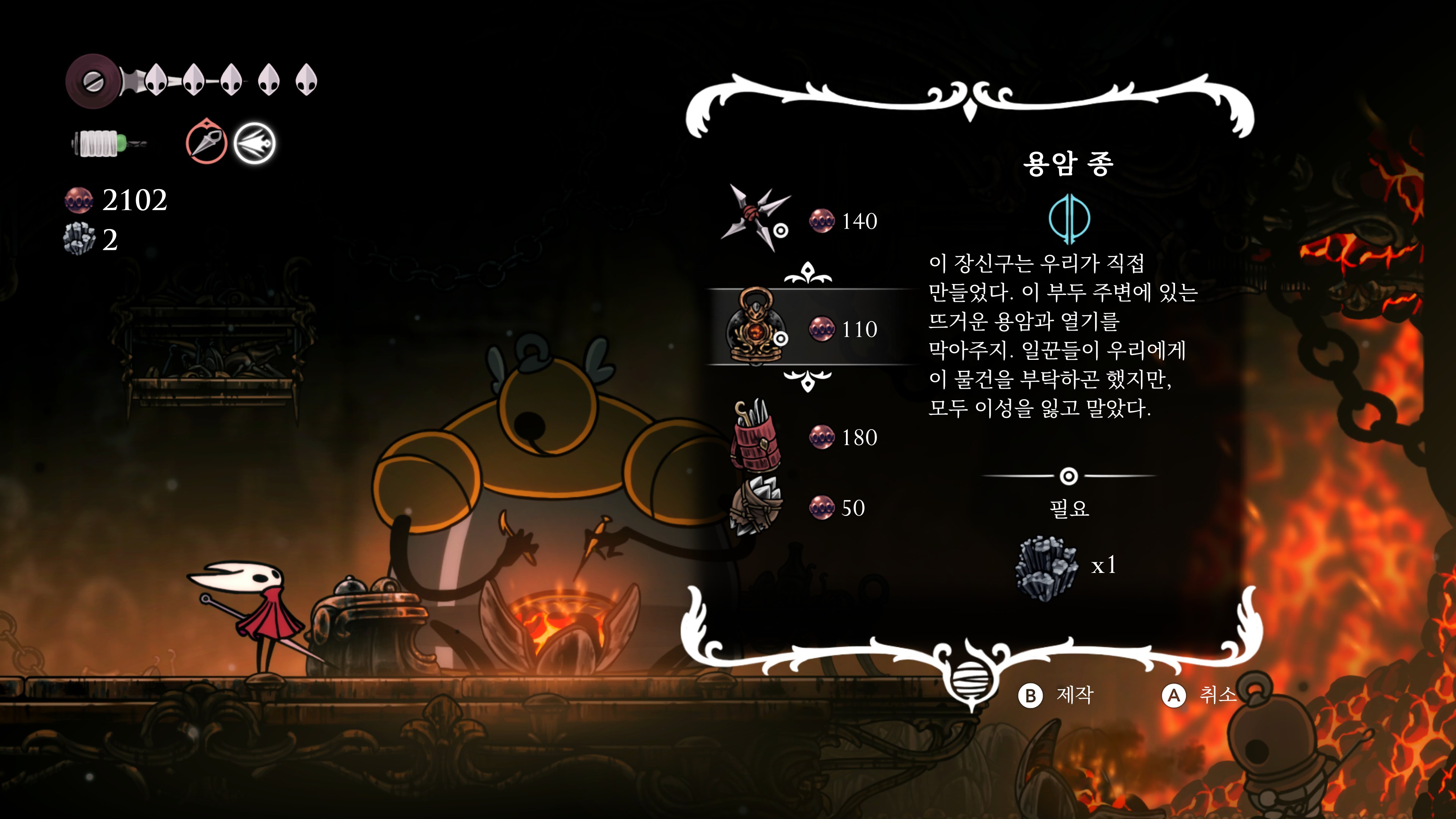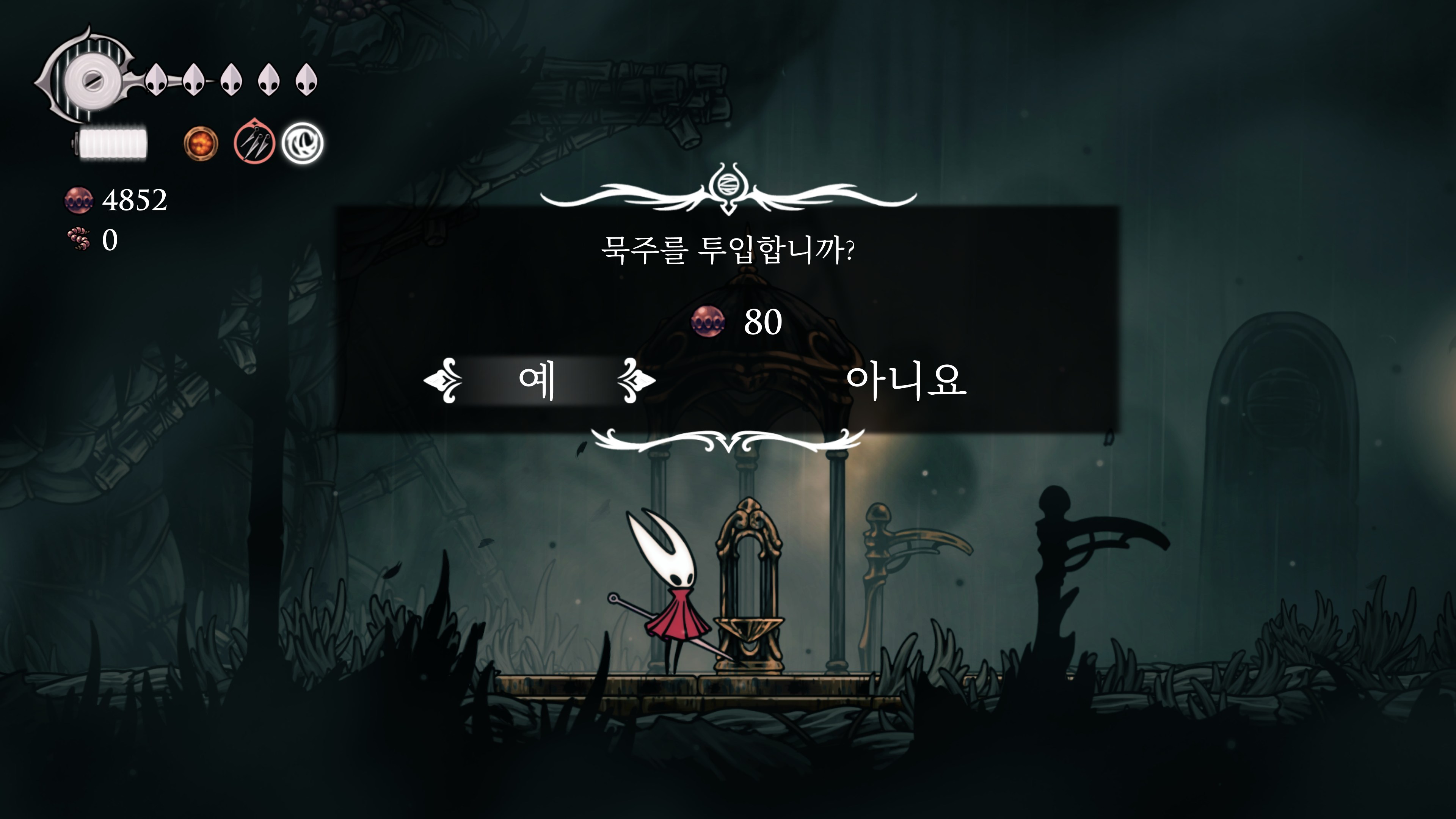 메트로베니아를 제대로 플레이한 게 할로우 나이트가 처음인데 자원을 잃고 하는 게 조금 스트레스였고 다른 건 괜찮았다.