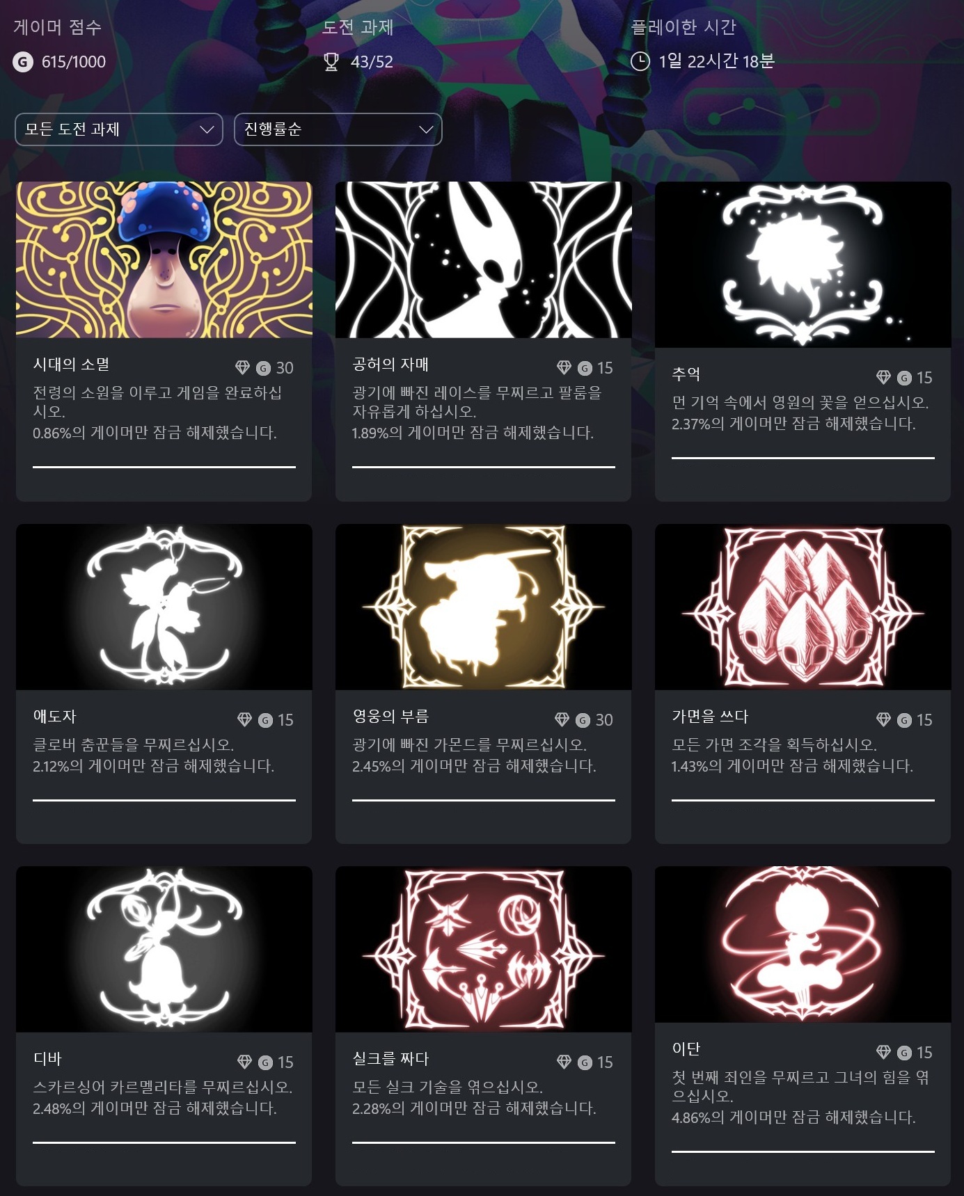 할로우 나이트를 끝내고 실크송을 시작했다.