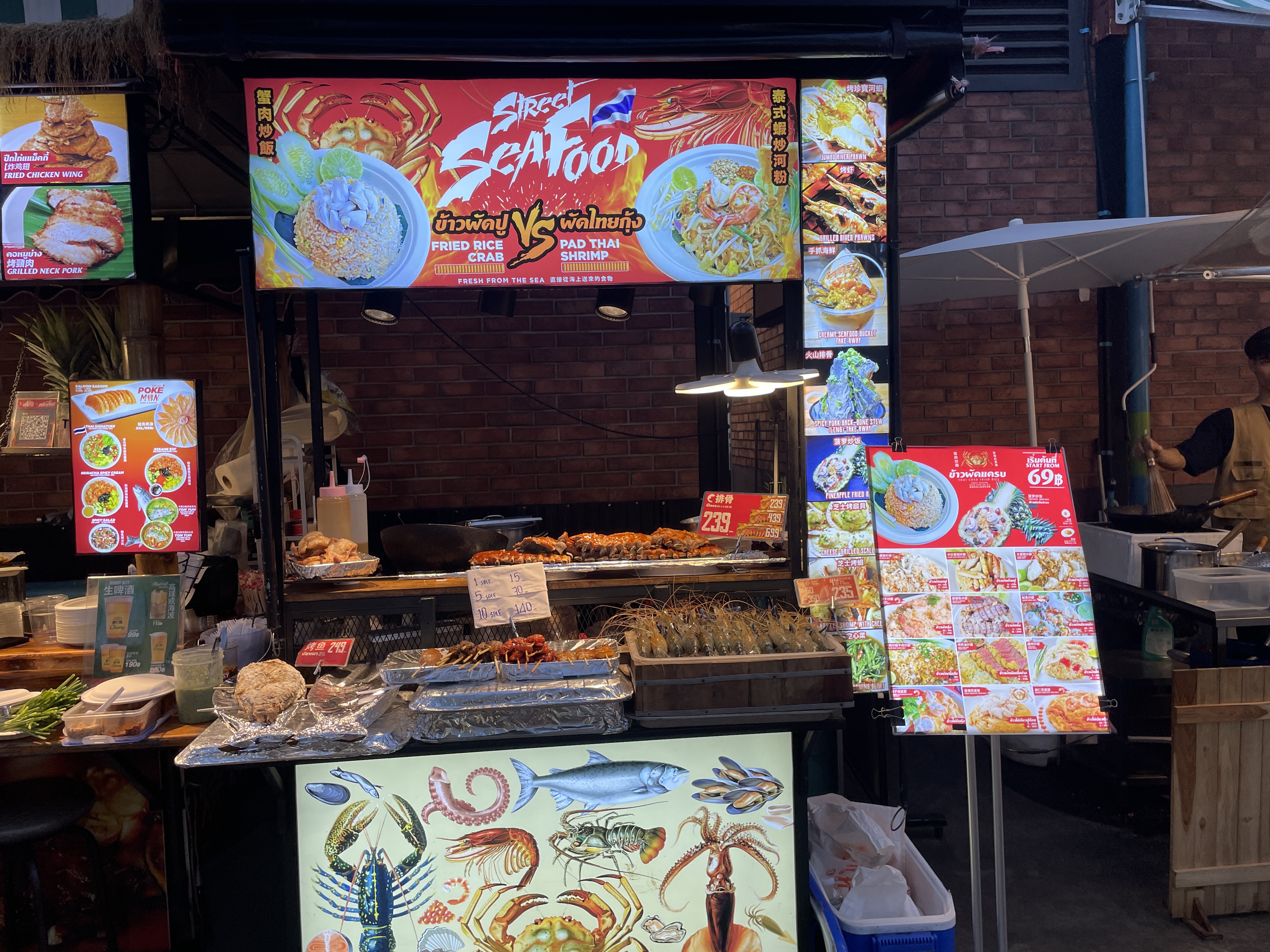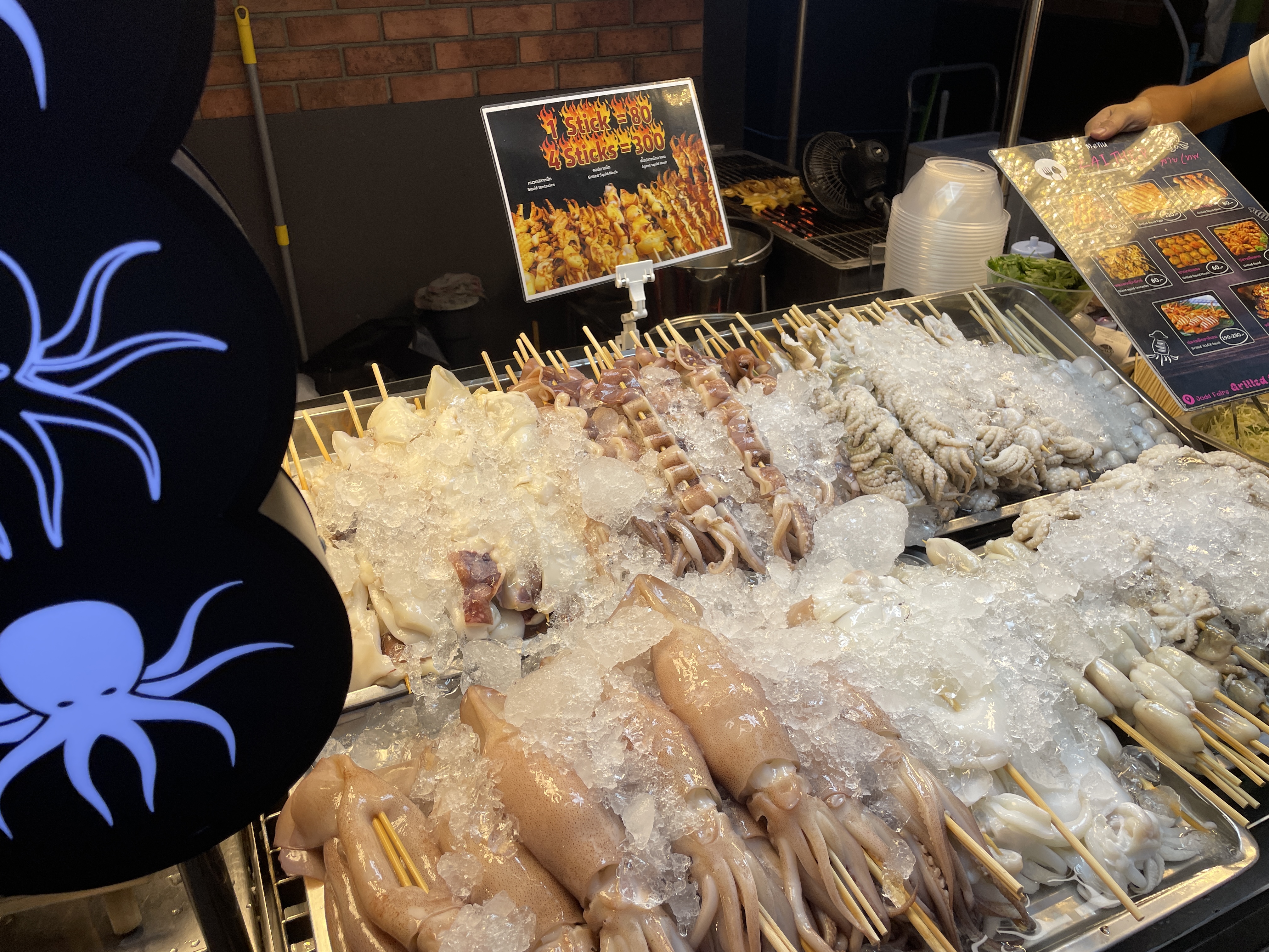 다양한 해산물 꼬치들.