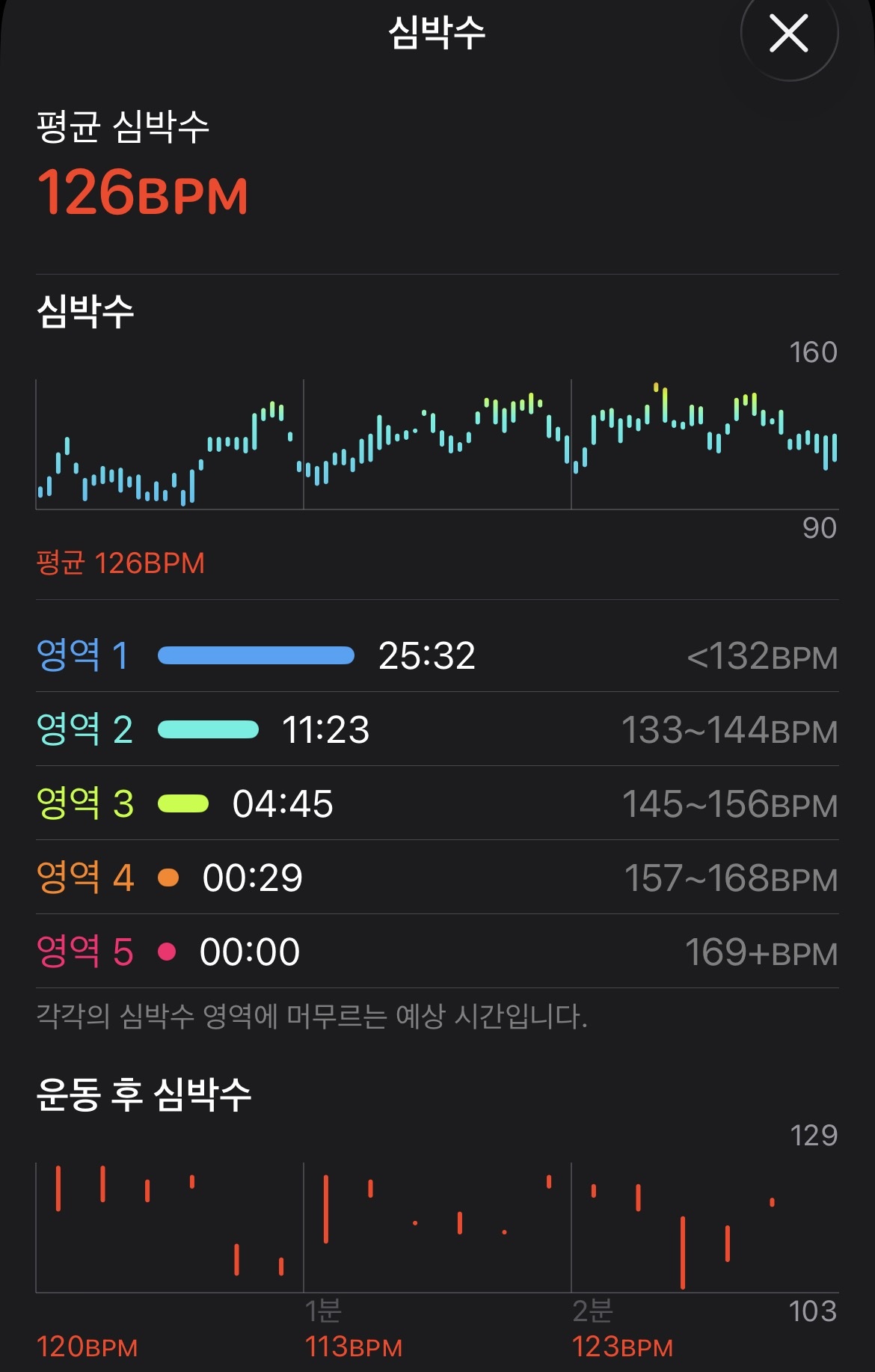 보트를 타는 시간이 길어서 맥박이 크게 오르지 않았다.