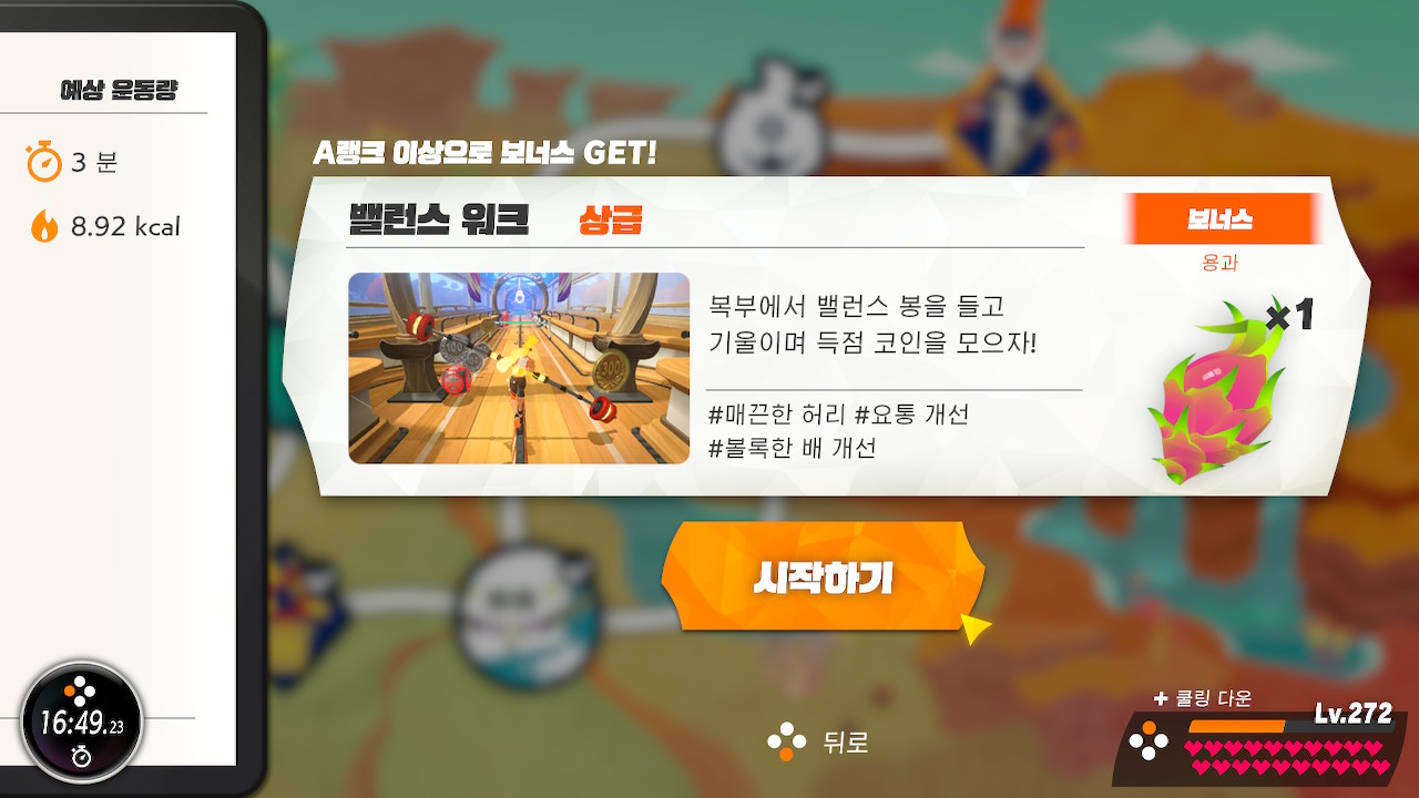 다음은 밸런스 워크로 링콘으로 좌우로 기울이면서 코인을 획득하며 이동하는 스테이지다.