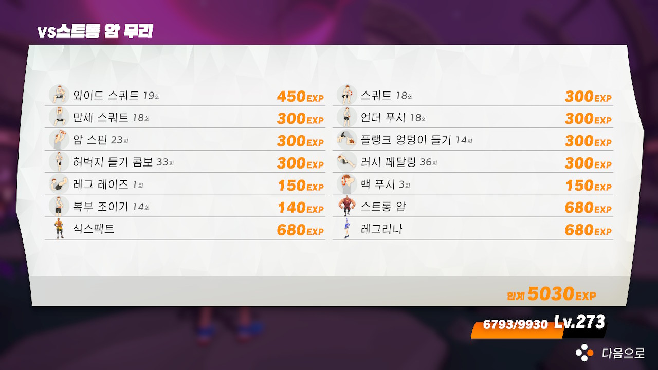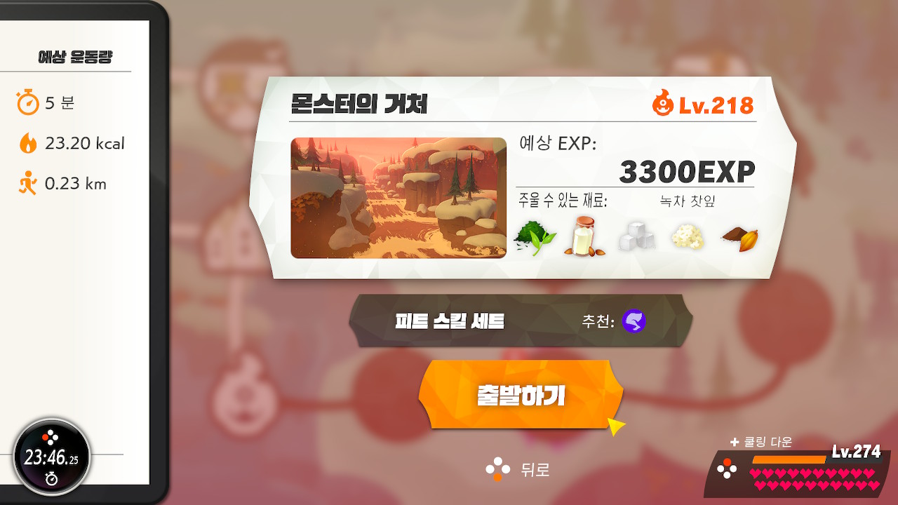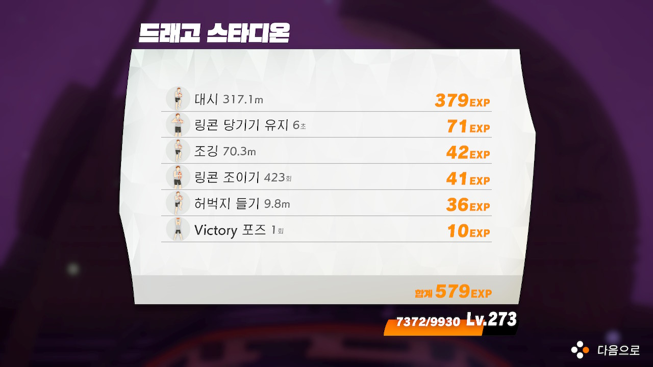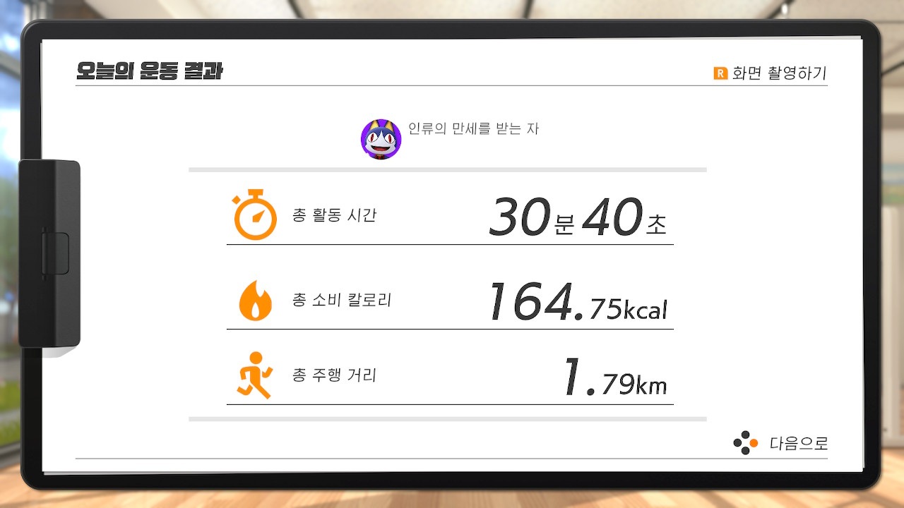 링 피트 기준 30분 40초 동안 운동을 수행했다.