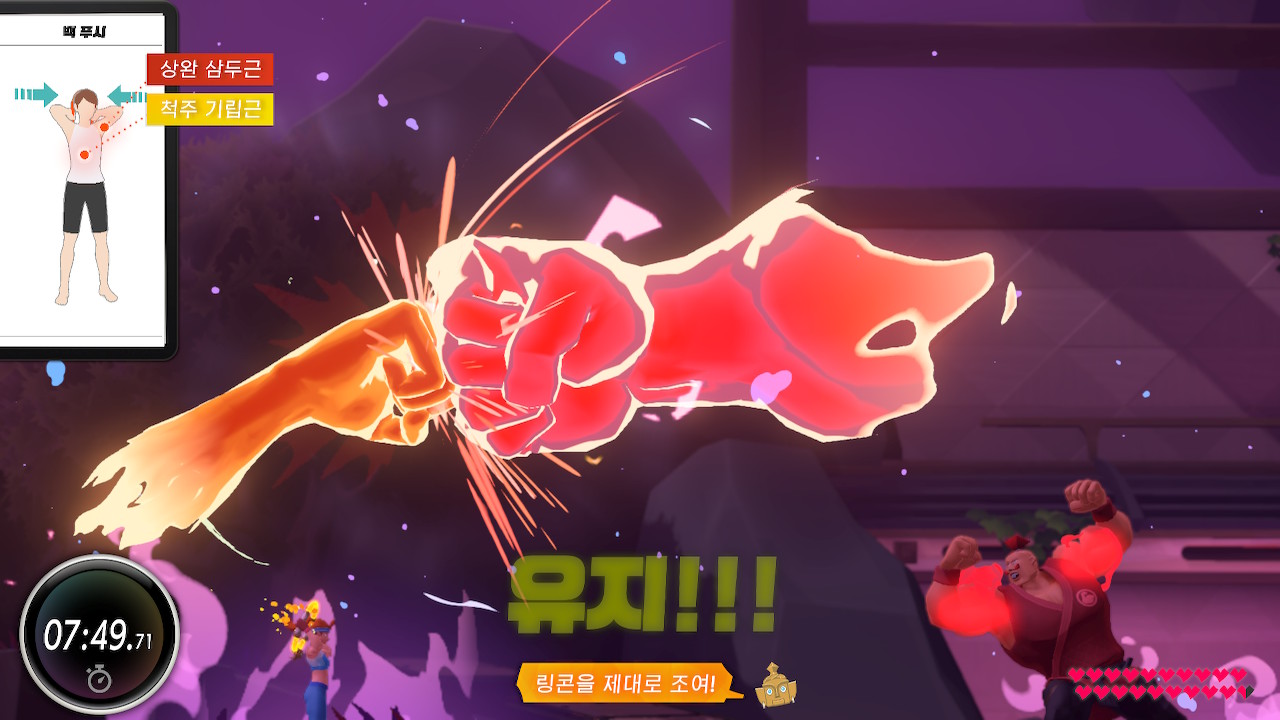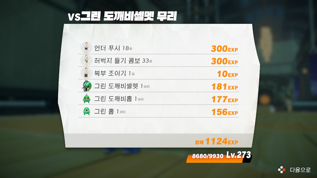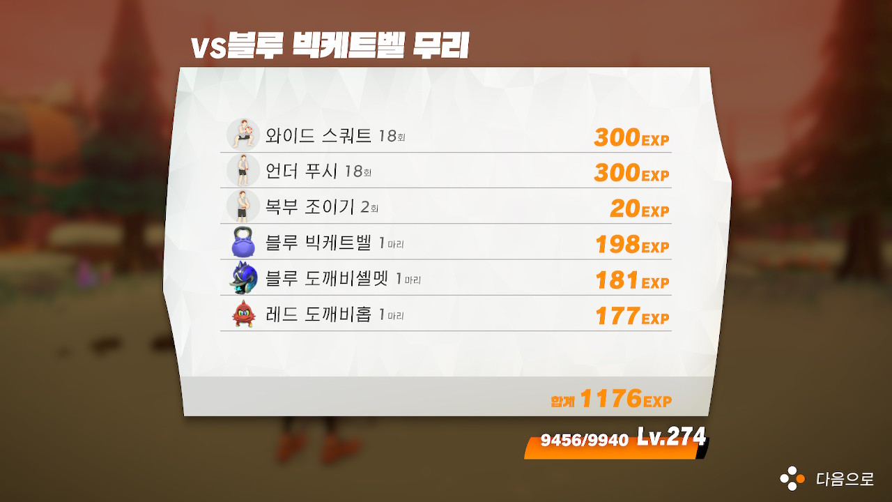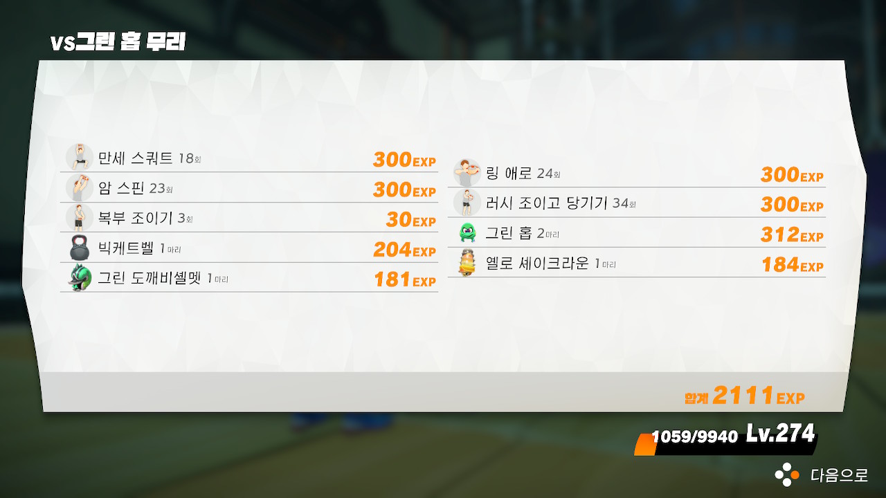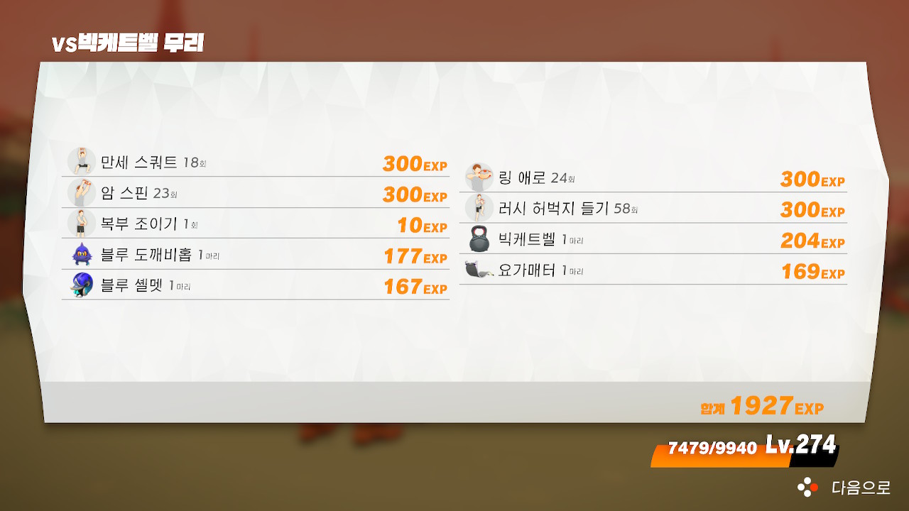 다양한 종류의 운동을 수행하며 마스터들을 물리쳤다.