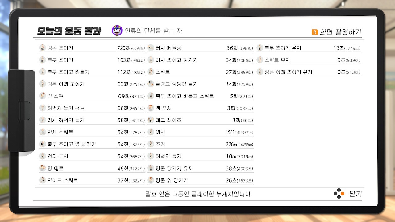 링 피트 100일 차가 되어 '피트니스 도사' 칭호를 획득했다.